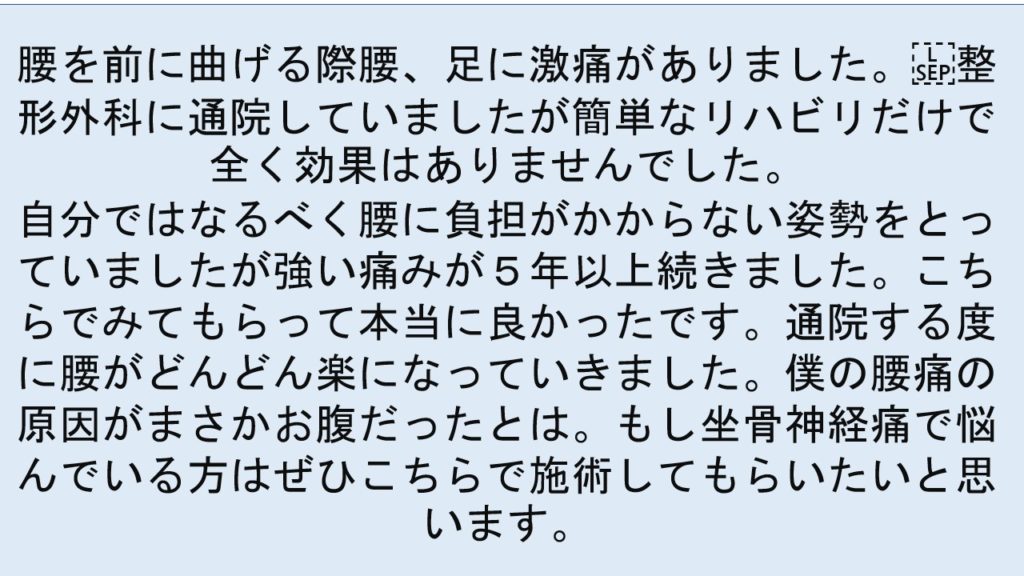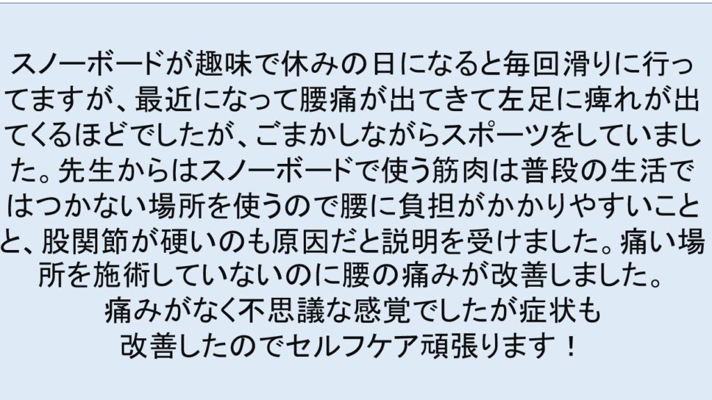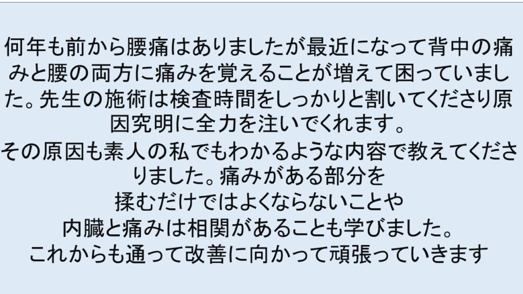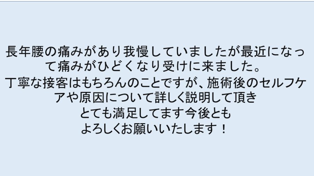 夜も寝れないくらい痛かった腰痛が改善しました!