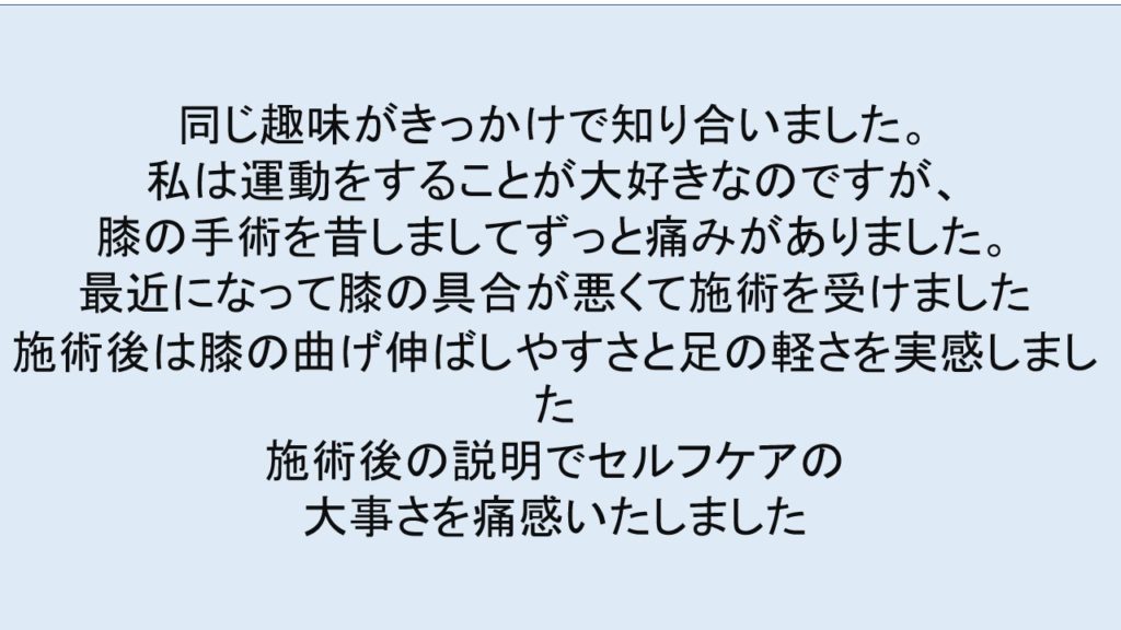 とても接しやすく身体に良いことを沢山教えて頂きました
