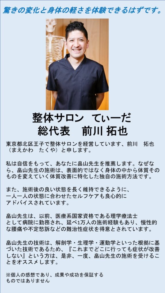 全国の医師・有名整体院・同業者からの推薦文